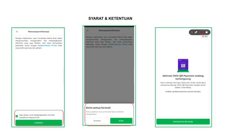 pendaftaran atau sebelum Anda melakukan aktivasi akun OVO Merchant Anda.