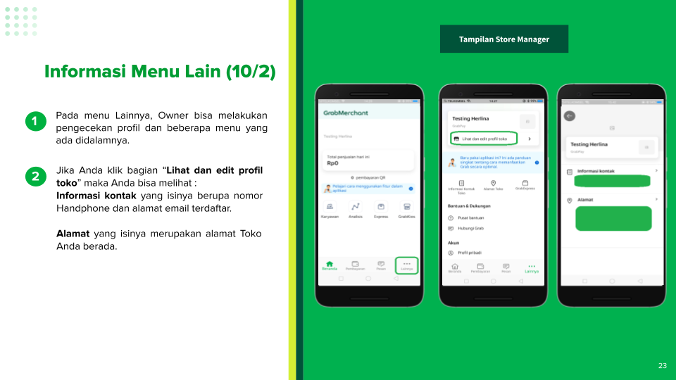 Untuk store manager: